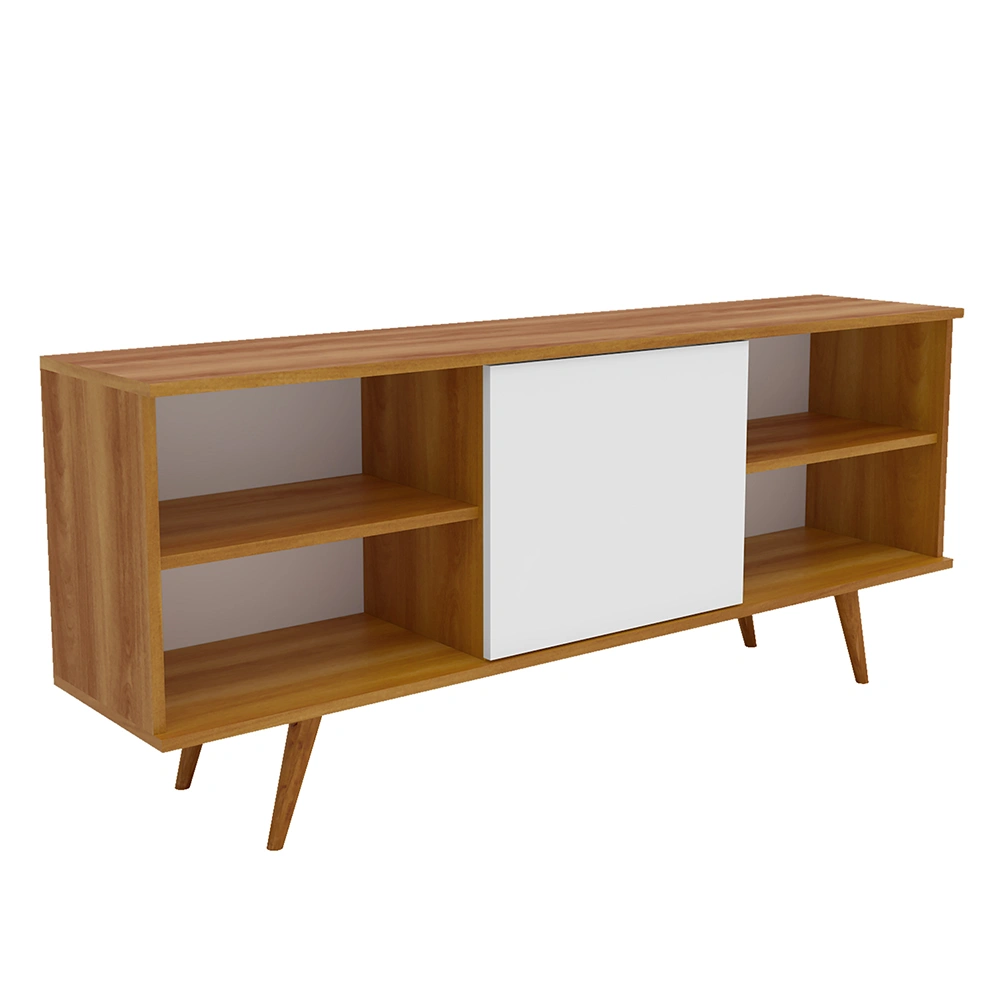 O Balcão Retrô nas cores Nogal e Branco é a combinação perfeita de estilo e funcionalidade. Com um design retrô e pés em madeira maciça, este balcão é ideal para compor ambientes como salas de estar, salas de jantar e até mesmo escritórios. Ele oferece amplo espaço de armazenamento com prateleiras abertas e uma porta para organizar e esconder objetos, mantendo o ambiente sempre elegante e organizado.