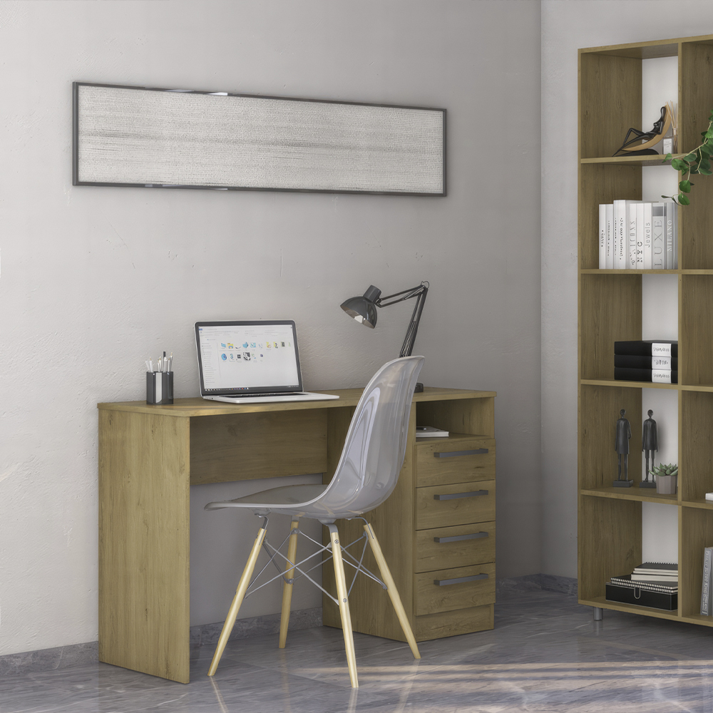 A Mesa Escrivaninha Office com 4 Gavetas é perfeita para quem precisa de um espaço de trabalho organizado e eficiente, proporcionando conforto e praticidade para o dia a dia.